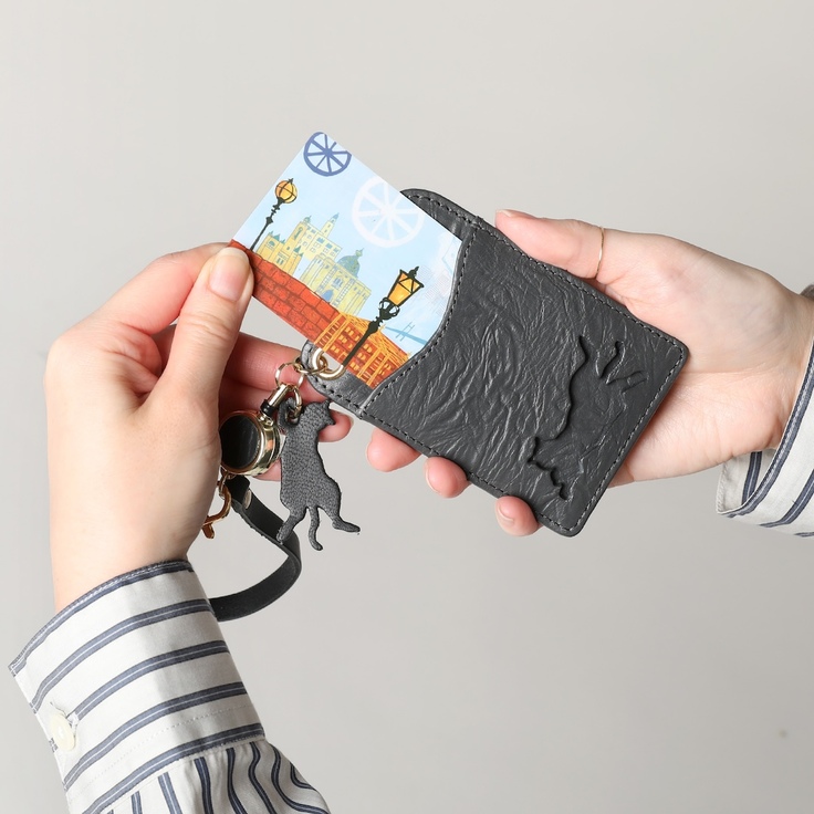 カードを入れるとくり抜きのあお向けネコのシルエットが際立ちそうです。