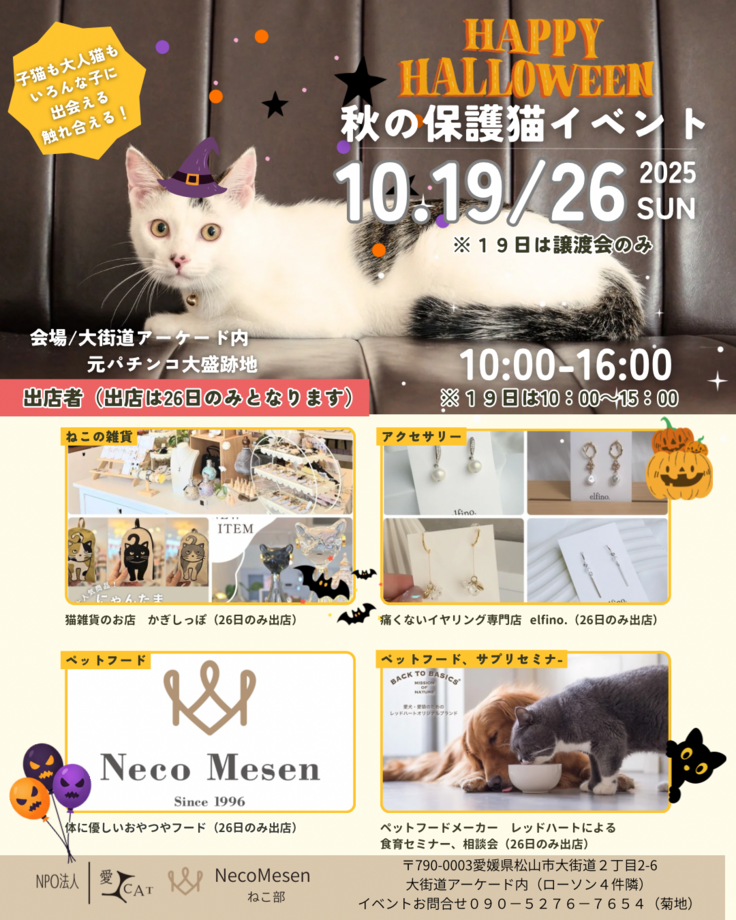 10月26日(日)愛媛県松山市大街道アーケード内にて、保護猫イベント(譲渡会も)を開催!