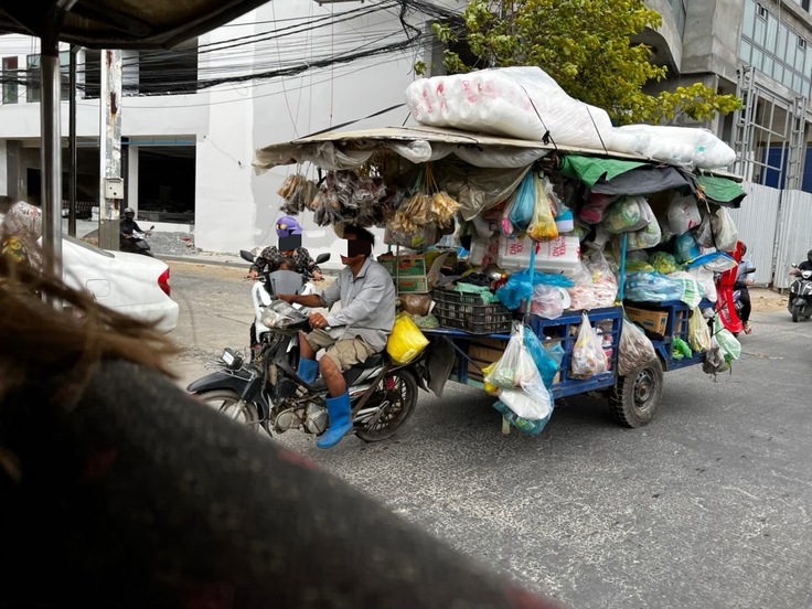 カンボジアでは、バイクの後ろに沢山の荷物を積み走っている方も多く見られました。野菜や肉、枕や家具など様々なものを積んでおり、日本では見られない光景であり、少し釘付けになって見てしまうのではないでしょうか!