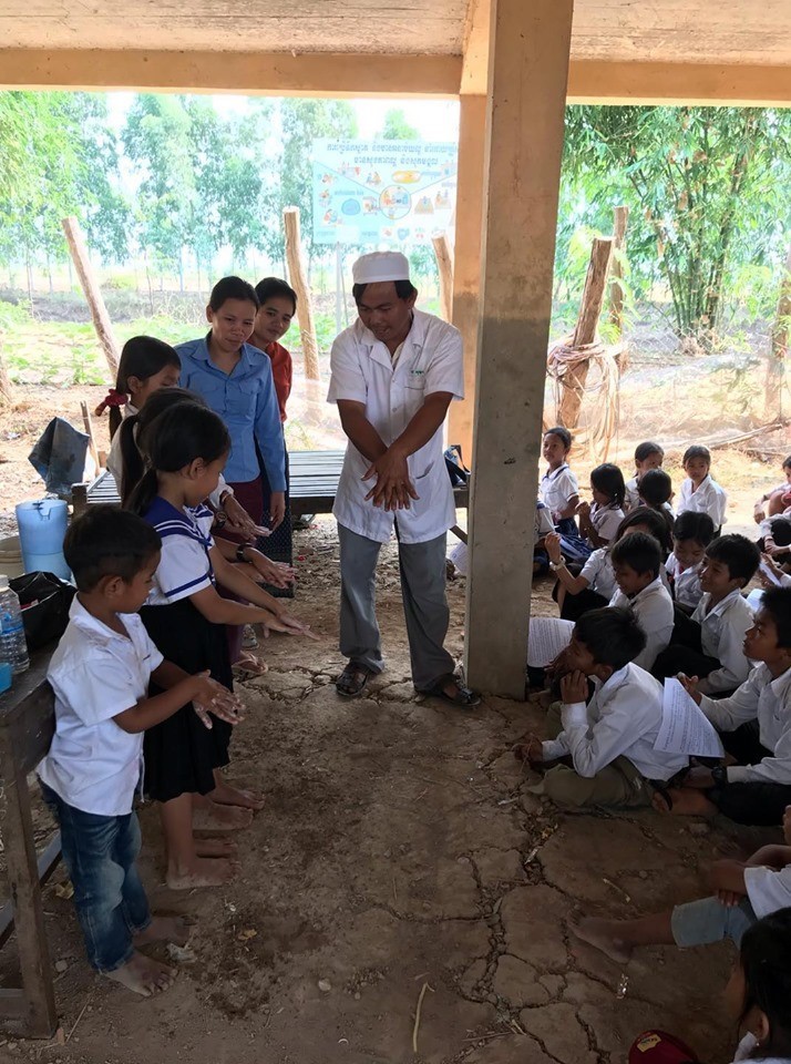 現地では、新型コロナウイルスの拡大の影響もあり、村のヘルスセンターのスタッフが小学校で生徒たちに対して自ら手洗い方法の指導をしてくれています。