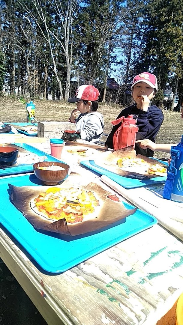 たけの子に宿泊している家族と米沢在住の福島出身の家族と福島からの一時保育の子と、み~んな一緒にピザ作り!
