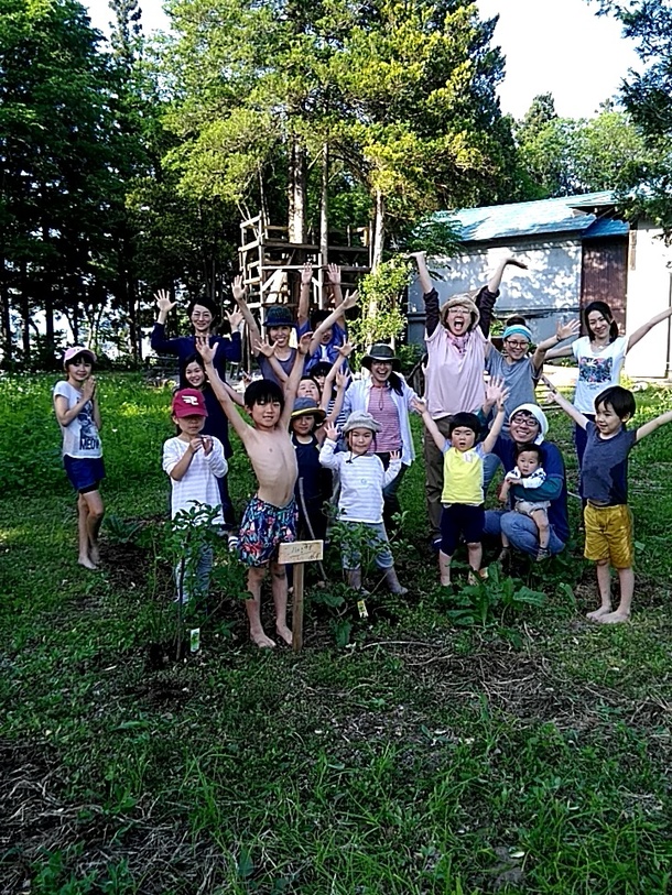 今日は、卒園した子たちの記念樹を植えに保護者さんたちが保養所へ集まってくださいました(^_^)/