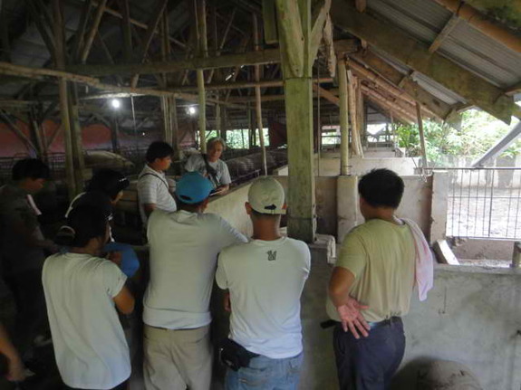 KF-RCからの循環型農業や環境問題についてのプレゼンテーションの後、実際に農場内を見てまわりました。マラビン・グループのひとりが「地域内もそうだが、農場内で循環しているのがすごい。私たちの地域にもBMプラントがあるので真似をしてみたい」と、やや興奮気味に話してくれました。その後、意見交換や質問をしあうと交流タイム。マラビン・グループの人たちからは、液肥を撒くタイミングや回数、豚の飼料の配合の仕方についての質問が多くあがりました。