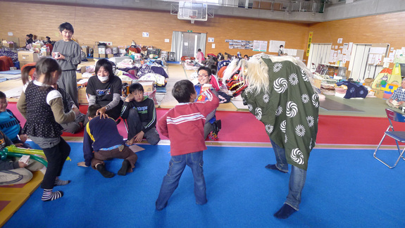 (気仙沼の避難所で獅子舞を舞った際の様子)