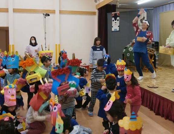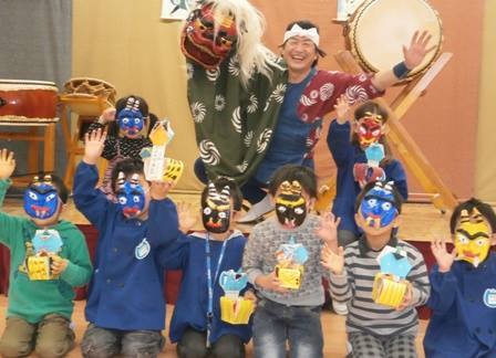 写真は山田町の保育園、節分の日でしたのでこどもたちが鬼のお面をつけて、私や先生が豆まき!!楽し~!