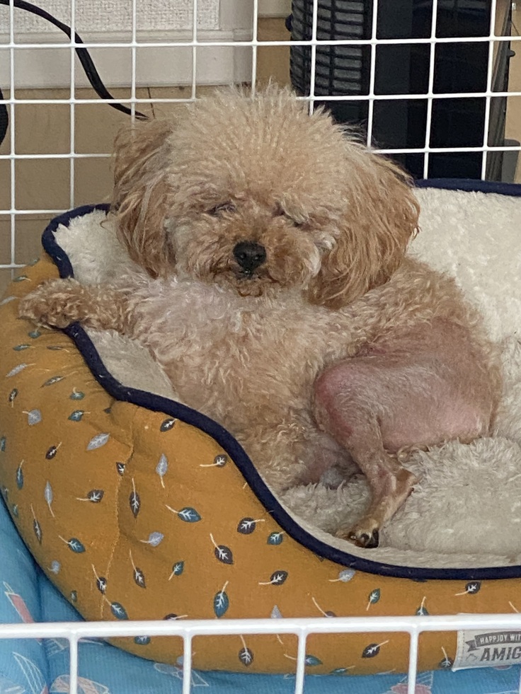 手術前からなんか足に負担掛かりそうで可哀想だから全然トリミング連れて行ってあげれてなくて顔ボサボサ(笑)
