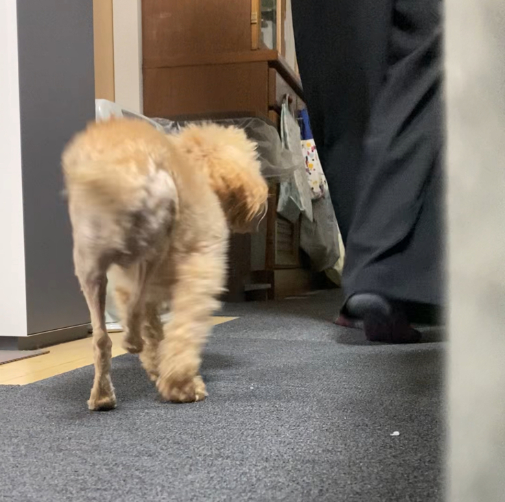 目視で確認しづらかったため動画を撮影したところ、右足を庇って歩いてる💦