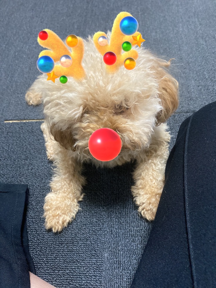 トリミング連れて行ってあげれてないから、もさもさトナカイのあんずです(笑)