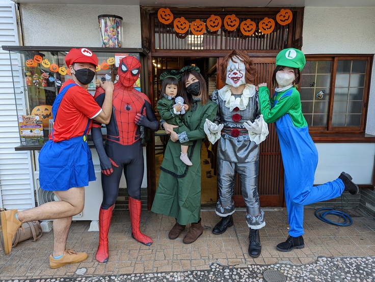 が仮装しなから参加し長後の街を歩きながら地域の店を知ってもらいながらお菓子をもらいました!