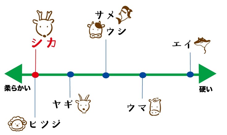 個体差や加工方法を加味しない、一般的な革の柔らかさ、硬さを表現すると
