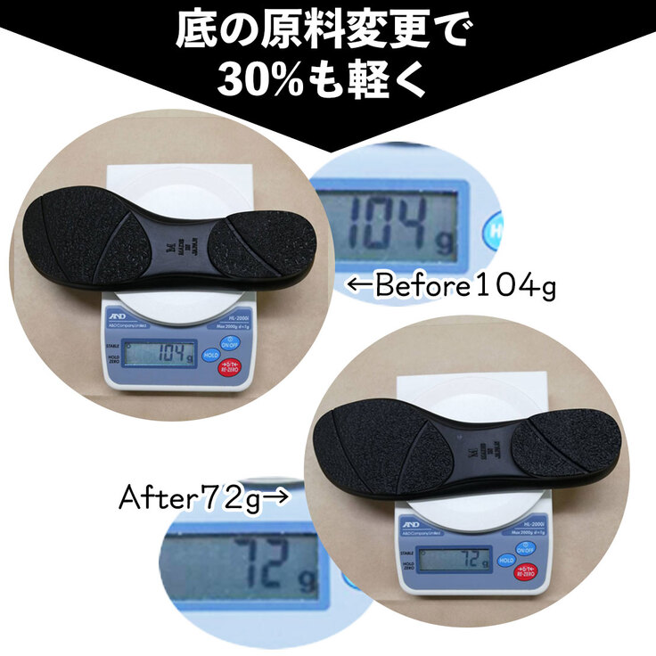 使用する靴底は、従来の原料よりも軽量化されたウレタンソールです。