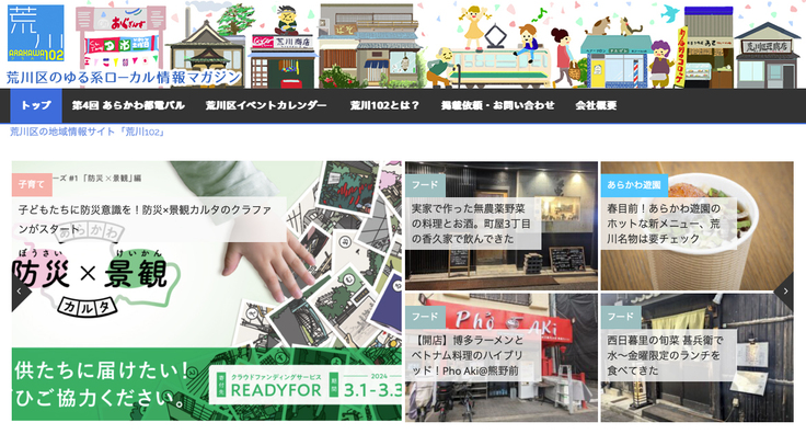 荒川区の地域メディア「荒川102」にて、【あらかわ 防災×景観 カルタ】のことを記事にしていただきました!