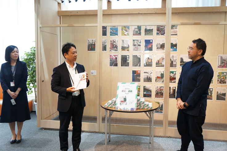 先日、カルタ寄贈先である荒川区のご担当者さまをお招きし、ささやかな寄贈式を行いました。