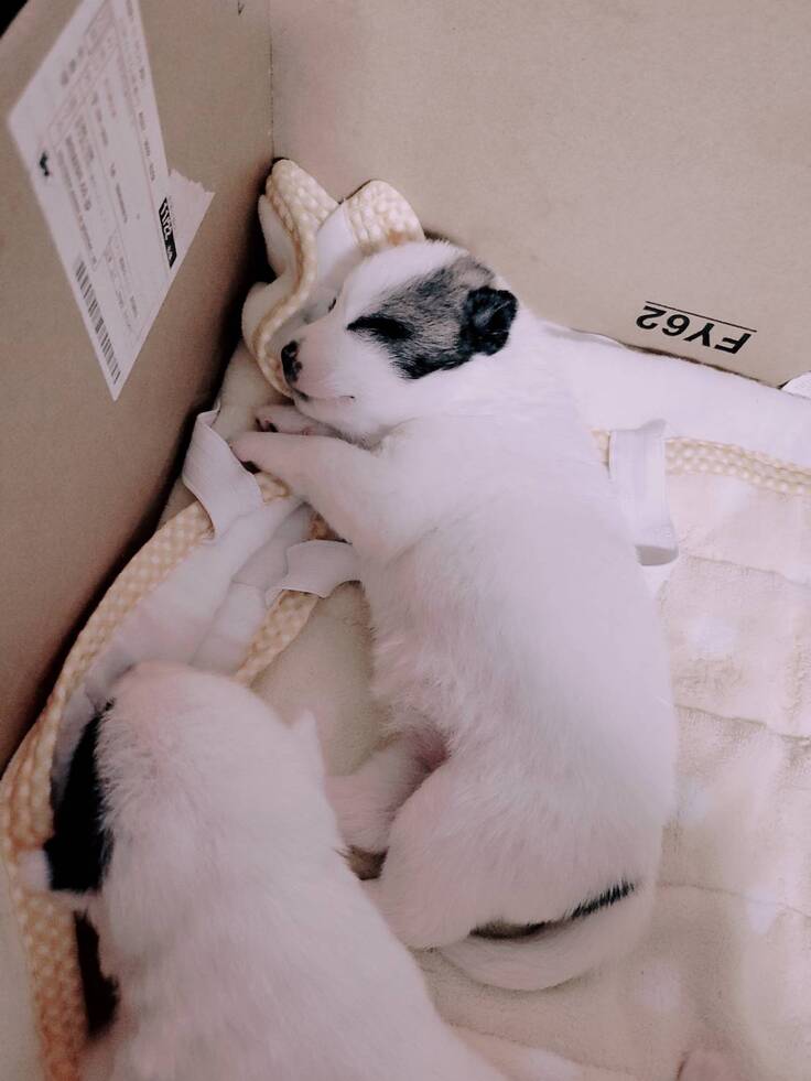 アラレは野犬の子供で、8匹兄妹で生まれました。生後3週間ほどで保護されました。