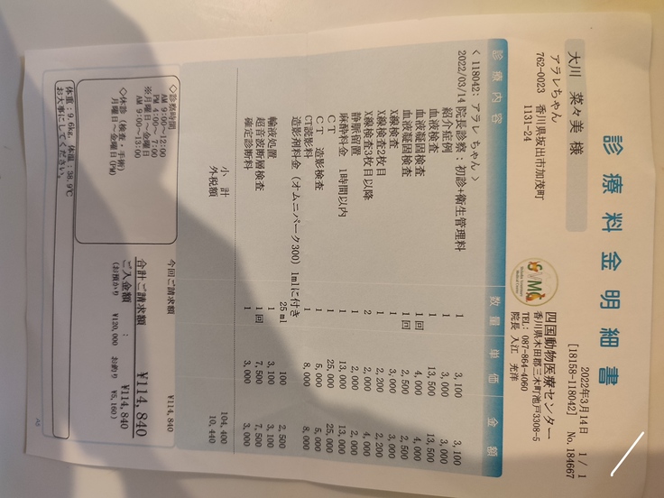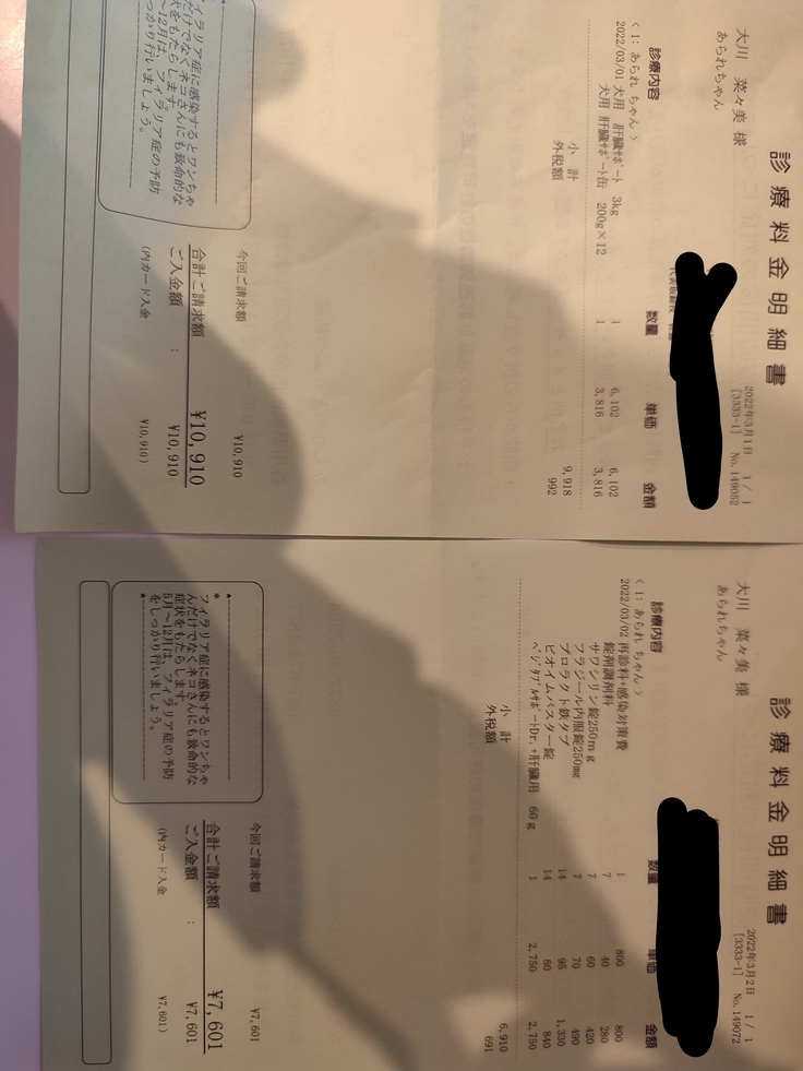 この病院でも分からないんだ。。この子はどうなってしまうんだろうか。とさらに不安になりました。治療法が分からないと治療もできないし、覚悟しないといけないんだなと改めて思いました。その時の明細書です。
