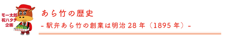 創業明治28年、三重に残った唯一の駅弁屋。 おかげさまで今年で127年目となりました。 とことん手作りにこだわり、愛情いっぱいの口福駅弁。 流れゆく時代の中でも変わらぬ味を、お客様の思い出の味として永遠に、、 美味しいあら竹駅弁を作り続けます。