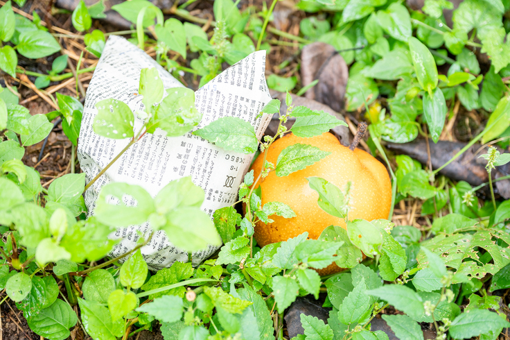 生産過程で、何らかの理由で落下する梨があります。これは「落ち梨」と呼ばれています。ほぼ味に遜色はなく、美味しく食べられるものの、商品としての価値はゼロ。なんと生産量の約1/3が、この「落ち梨」に当たるといいます。