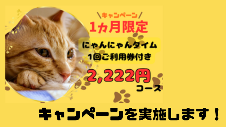 1週間後の11月より、「にゃんにゃんタイム1回ご利用券付き」の2,222円コースを1ヵ月限定で公開します!