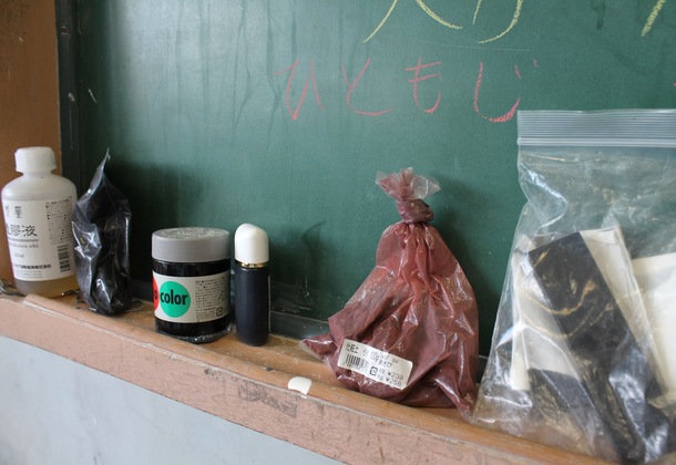 今回使用している淡墨は雲炎さんがさまざまな材料を配合してつくったオリジナルのものです。写真一番右に見えるものは『黄山松雲』という古墨で大変古いものだそうです。非常に高価なもので、色が大変美しいとのこと。そういったことも聞いて初めて知りました。