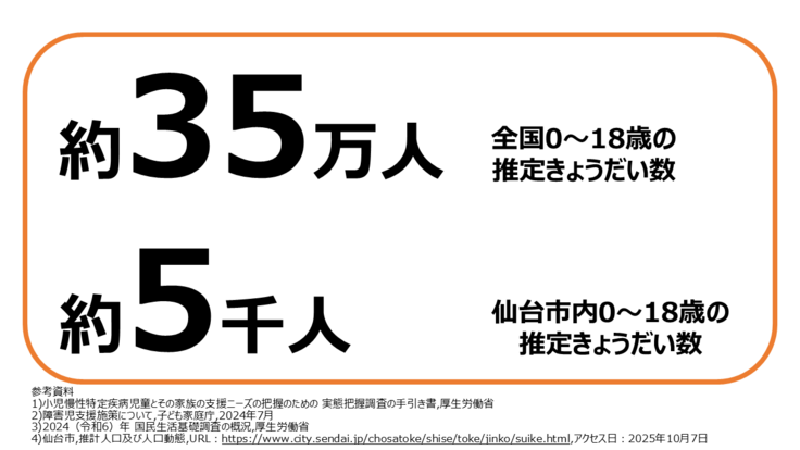 日本では約35万人、仙台市内では約5千人のきょうだい(0歳~18歳)がいると推定されます。