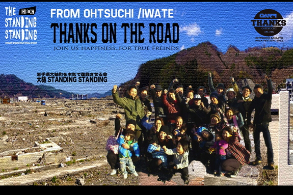 2012年6月30日。大槌町民の「ありがとう」を世界発信するため、そして大槌町民自身を勇気づけるため「第0回おおつちありがとうロックフェスティバル」を開催。OKIさんを始め、様々なミュージシャンや町の人々、そして外部から支援を続けてくれる沢山の人が一致団結し、思いを共有し、実現させたこのイベントは、計3ステージで延べ8000人の来場者を集める事ができました。