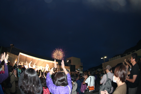 そして、花火。「第0回」フェスでもフィナーレを飾った打ち上げ花火。これだけは、大槌町民の「ありがとう」の思いでカタチにしたいと、町内各地に設置した募金箱と、毎週のように町内で行った街灯募金で集まったお金で実施。大槌町民の思いをこめた感動の花火を打ち上げました。
