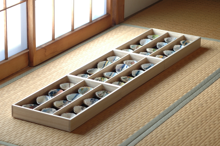 平安時代から江戸時代にかけて伝わった日本の伝統的遊びの一つである「貝合わせ」。富嶽三十六景、源氏物語など、忘れ去られようとする古来日本の風景を一枚一枚に鮮やかな色彩で描いています。