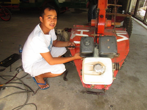 私の仕事はARMLEDにとってとても重要です。なぜなら、ARMLEDにとって要である農機は私が管理しているからです。特に、農地での作業中に壊れてしまった場合、農民は修理ができないため私に連絡をしてきます。連絡を受けたら、私はどんな時でも即座に駆けつけ、農民が作業を続けられるよう農機の修理に当たる必要があります。ただ、我々はまだ修理道具も十分に備えているわけではありませんので、道具が足りないこともあり、その場合は自動車修理屋などから借りて修理をします。また、フィリピンは一年中大変暑いので、炎天下の中、何時間以上も動かなくなった農機を修理することもあります。