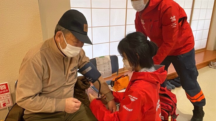 懸命な消火活動が続いていた期間は避難所によっては収容人数の密集度が高く、キャパオーバーになっているという報告もありました。空飛ぶ捜索医療団は支援物資をはじめ、看護師が血圧を測るなど健康面のケアを行いました。