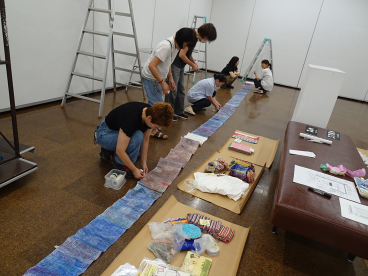 多くの作品を前に、7名のボランティアさんと共にそれぞれの作品が輝けるように展示作業を行っております。