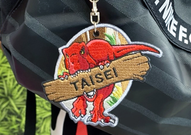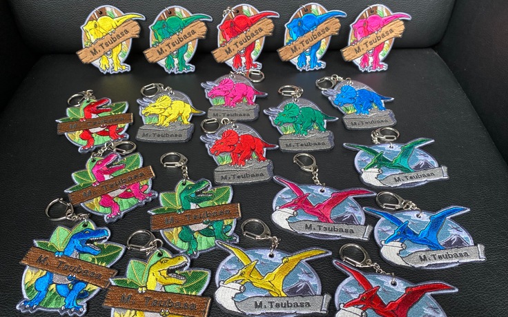 ご寄附いただいた皆さまには、今回のクラウドファンディング限定特典となる名入れ刺繍を入れた恐竜オリジナルワッペンキーホルダーをお届けします!