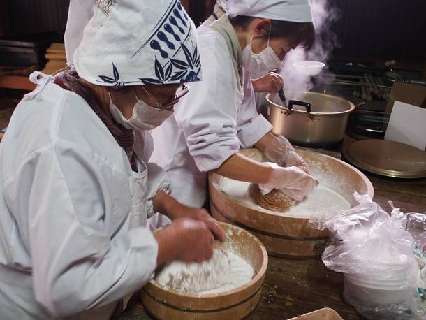 『栃もち』はトチノキの実をもち米とともに蒸してからつき、