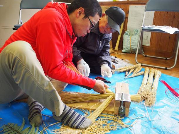 丈夫な、しめ縄を作るのは、初心者には一苦労。縄をなうのがやっと…難しいです。匠の技の凄さを思い知ります。