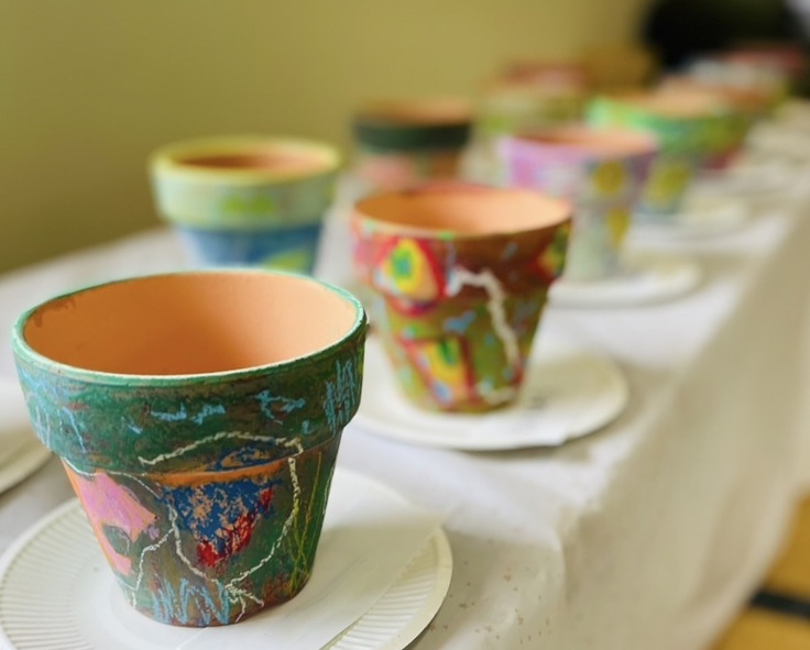 (2024年6月 岩井戸公民館で植木鉢に描く作品)