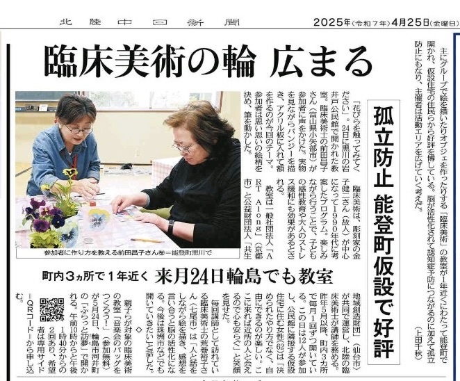 今年の5月には輪島市でも初めて臨床美術を行い、1日のイベントに50名の参加がありました。