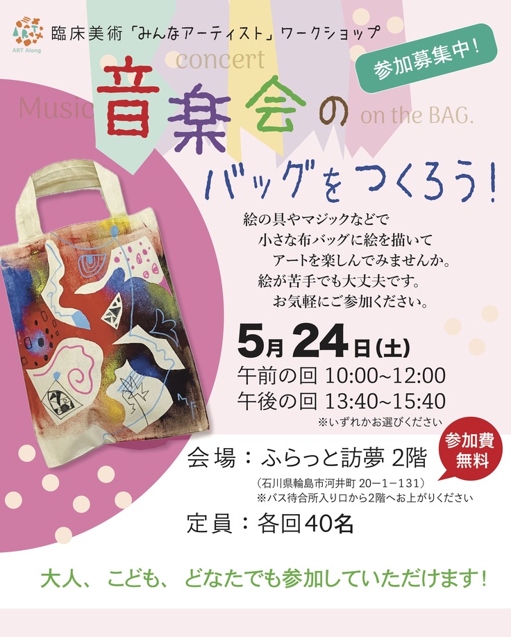 能登での臨床美術の活動には材料費、交通費などが必要です