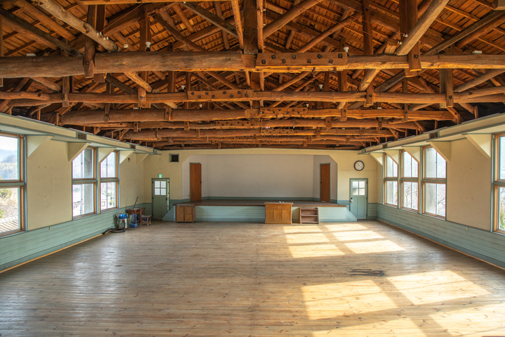 2022年10月に登録有形文化財になった旧尾道市役所百島支所庁舎「旧支所」を一日貸切で使用できます。2階の180畳の大広間でイベント開催なども可能。宿泊は最大10名まで。