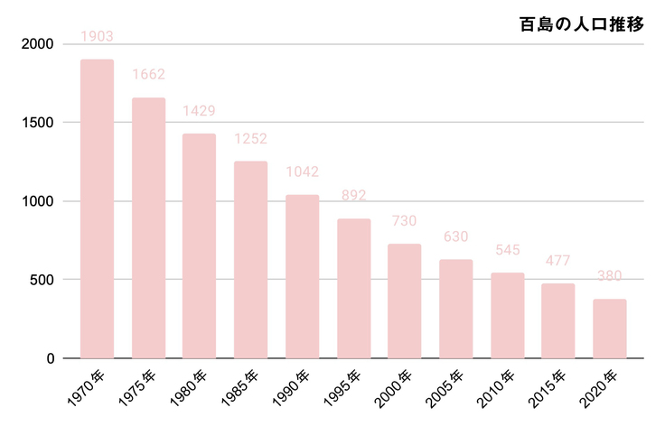 ただ、この小さな島も過疎化と高齢化の問題に直面しています。1950年に3,000人近かった人口は、現在では400人以下まで減少し、その多くは70代以上の高齢者です。