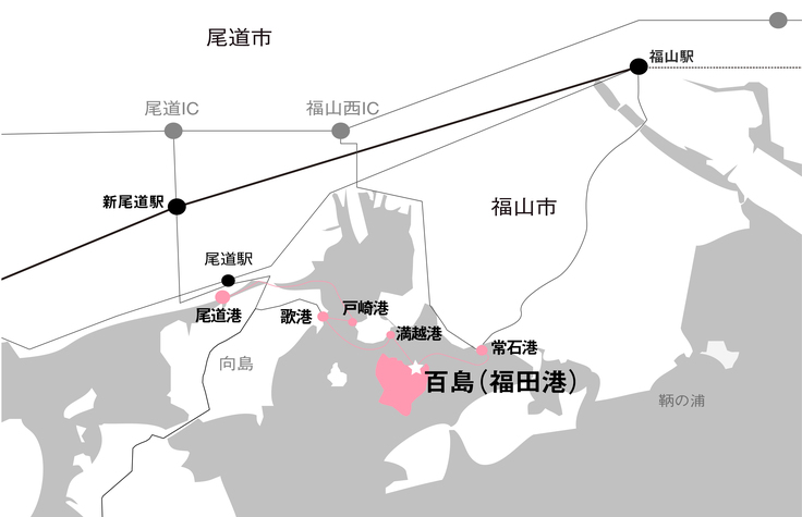 まさに離島=不便な場所 ・・・とはいえ、この船の定期航路は、日本遺産に選ばれた街並みを持つ尾道、そして高級リゾートホテルのある福山・常石に繋がっており、観光の拠点としてのポテンシャルは十分にあります。