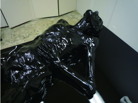 台座の上に横たわり、しかも顔は苦しそうに歪んでいて、