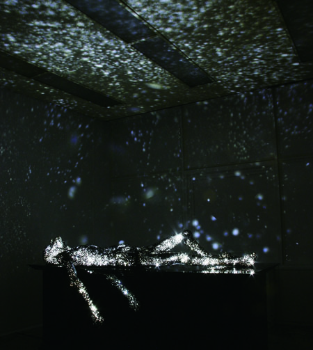 彼女自身のシルエットと、無数の点で構成されたドローイング作品でした。