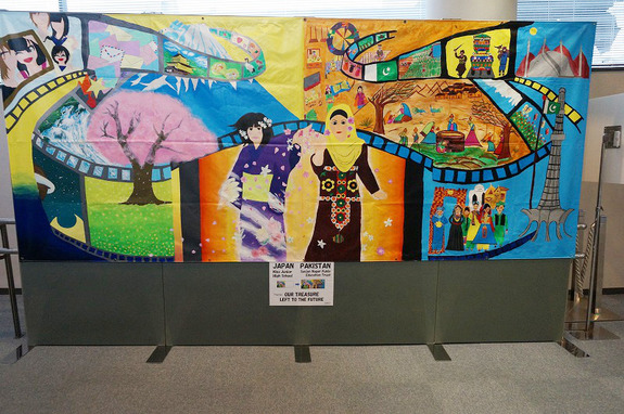 こちらは日本の中学生とパキスタンの中学生が共同制作した壁画です。