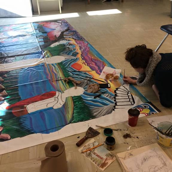 日本のパートナー校の生徒の思いを受け継いで壁画を描いています。