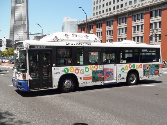 横浜ではアートマイルの絵をラッピングした市バスが2台走っています。