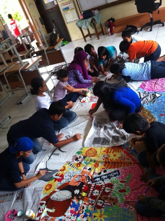 ★写真は、2月にインドネシア側が絵を描いているところです。