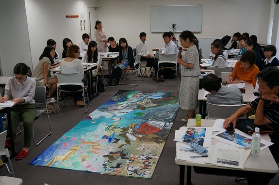 関東セミナーには37名が参加、こちらでも素晴らしい取組の発表があり、「作品から読み解く」では実際に指導された先生がお話しをしてくださって、制作に至るまでの過程や生徒さんの絵に込めたメッセージを参加者の皆さんが感じ取ることができました。