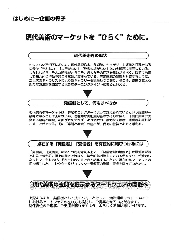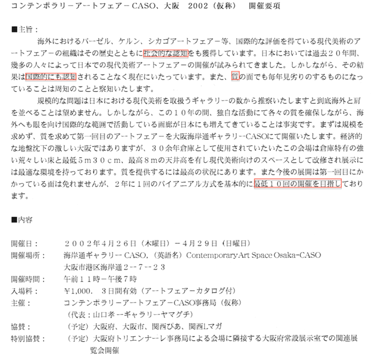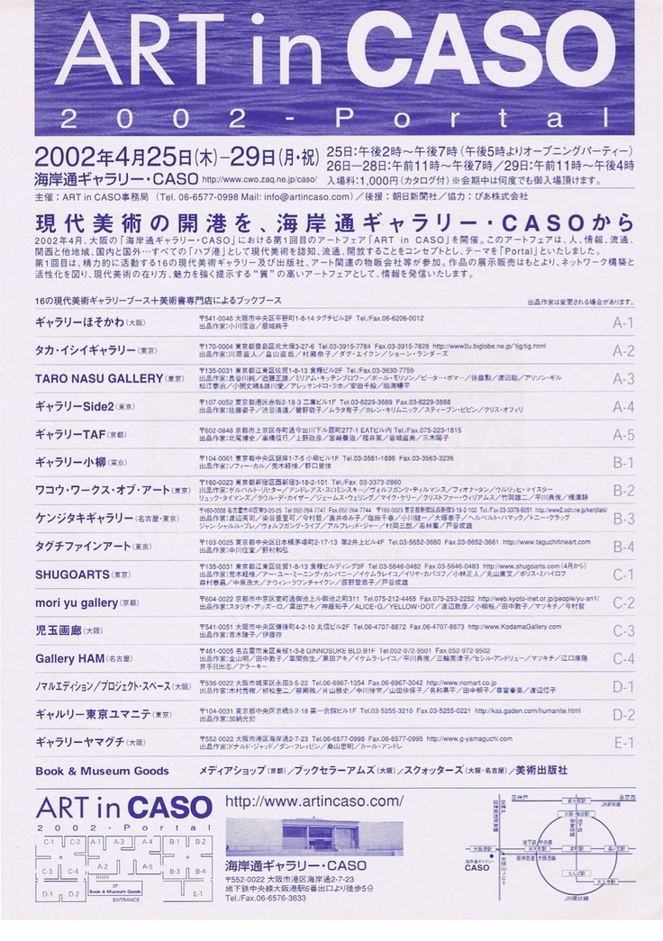 このクラファンの機会に、以前過去の資料を整理していて見つけた、20年前のART OSAKA の前身「ART in CASO 2002」の資料をご紹介いたします。