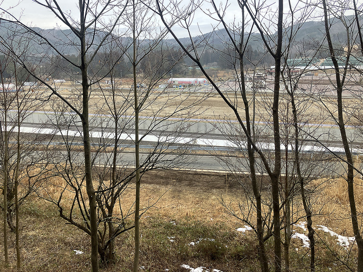 殆どの家が跡形もなく解体され、造成中の畑と建てられたばかりのビニールハウス、建てられたばかりの巨大集会所だけがある。