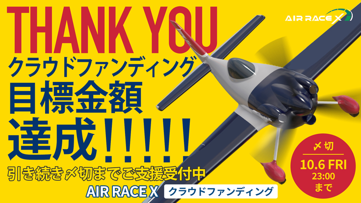 9月8日17:00に開始したクラウドファンディング「エアレースX2023|パイロットの夢と挑戦が、渋谷の街を駆ける。」は、ご支援者皆さまのおかげで、10月1日に目標の700万円に到達することができました。ご支援くださった皆さまのおかげです。本当にありがとうございます!!