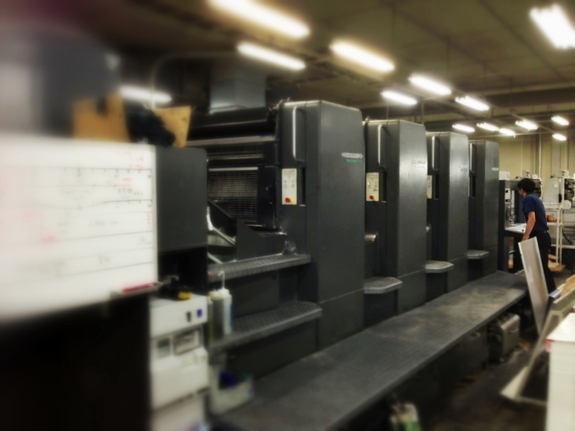 この印刷機はドイツのハイデルベルグ社の四色機です。